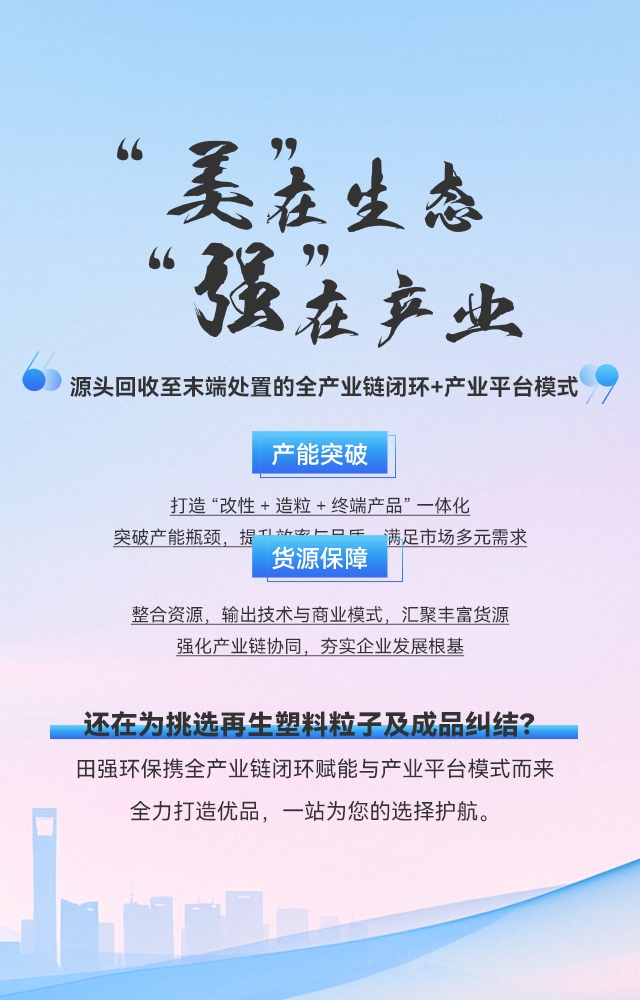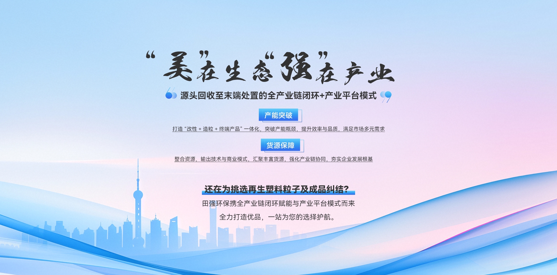 公司成立于1998年,是一家以创新、研发、服务为一体的国家高新技术企业,2016年在上股交科创板挂牌,展现了强大的实力与发展潜力。作为再生塑料国家标准制定者,我们积极推动行业规范发展。旗下业务覆盖再生塑料全产业链、垃圾分类“两网融合”等多个领域,拥有完整的全产业链技术和资质,在资源循环利用领域不断开拓创新,为保护环境、推动循环经济发展持续努力,经过20多年的深耕发展,上海田强环保科技股份有限公司现已成为国内再生塑料行业的先锋企业、业内实力的再生资源循环经济全产业链运营服务商。